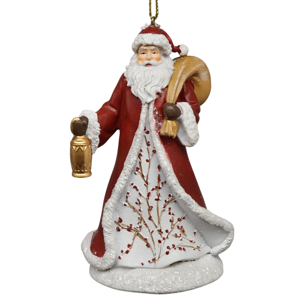 Berry Vine Santa with Lantern Ornament - 5 inches