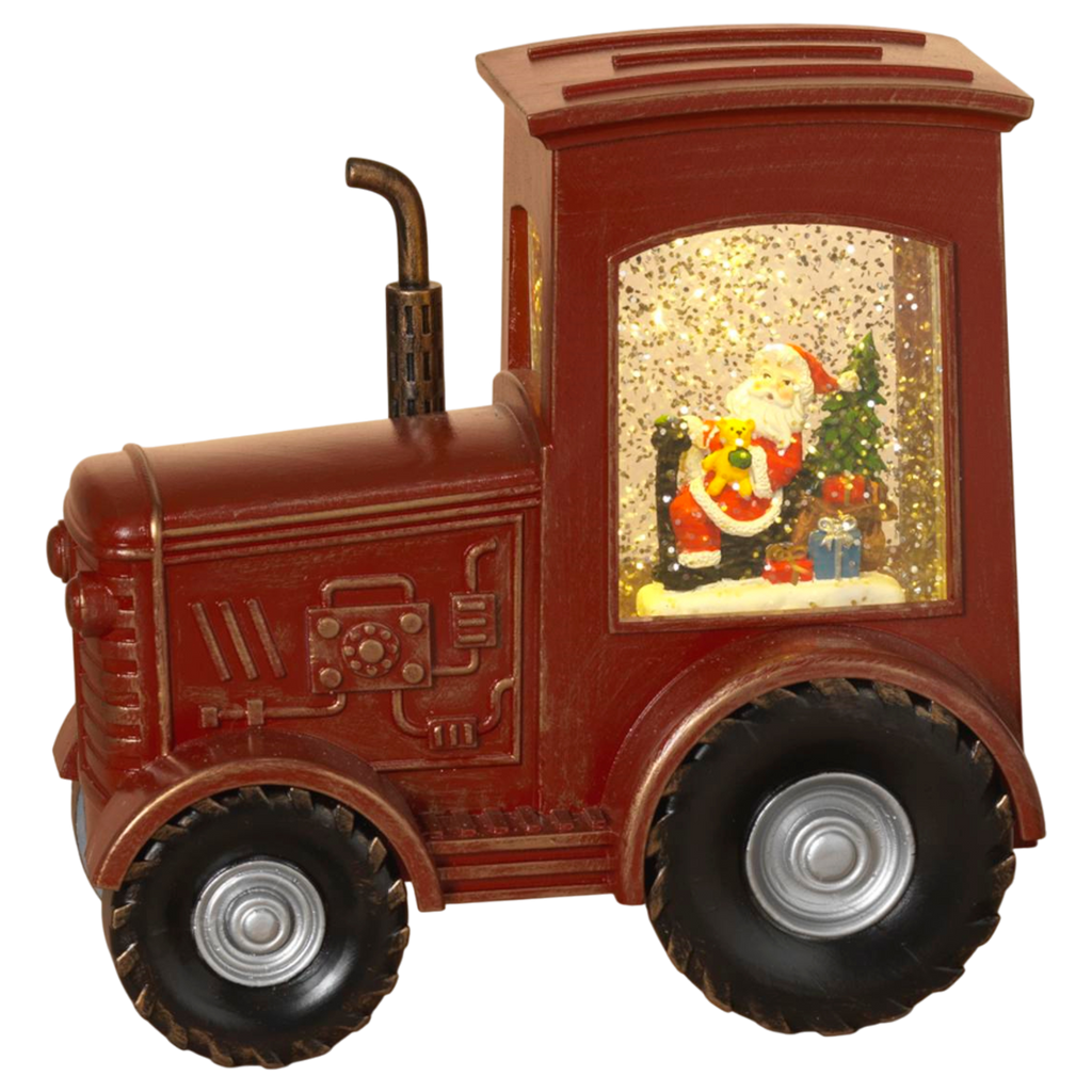 Rev up the holiday cheer with this glitter-filled Santa’s Holiday Tractor Snowglobe, where old-fashioned horsepower meets North Pole magic. Inside the cab of this classic red tractor, Santa’s behind the wheel—wreath in hand, gifts in tow, and a twinkling tree riding shotgun. Shake it up to unleash a flurry of sparkling “snow,” powered by LED lights and a dash of Christmas spirit. Whether you're a farmhand or just farm-fanatic, this decoration plows straight into the heart of holiday nostalgia.
