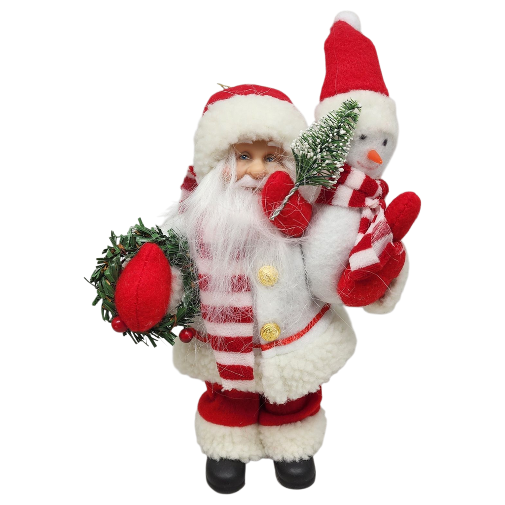 Spread holiday cheer with this delightful Festive Santa, complete with a cuddly snowman pal! This jolly Santa is dressed in a cozy red and white ensemble, embellished with classic winter textures. He proudly holds a beautiful wreath in one hand, symbolizing togetherness and warmth, while the cheerful snowman in the other hand adds a playful twist to your holiday decor.