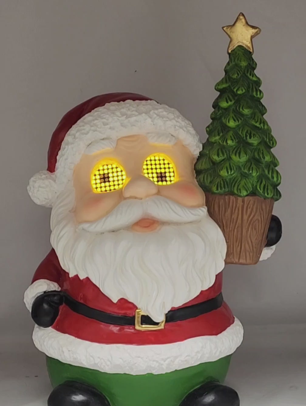 TheJolly Santa with Moving Eyes and Christmas Treeis perfect for brightening up your home during the holiday season whether displayed on a mantel as a centerpiece for festive gatherings or welcoming guests at your front door. Celebrate the magic of Christmas with this whimsical and heartwarming Santa that will surely become a cherished part of your holiday traditions for years to come!