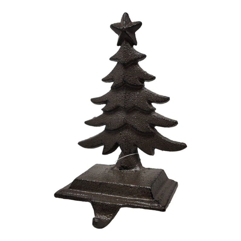 Adorn your home with rustic elegance this holiday season using this charming Christmas Tree stocking holder. Made from durable cast iron this sturdy holder ensures your stockings stay securely in place even when filled with holiday goodies. Designed to resemble a beautifully detailed Christmas tree complete with a star on top its intricate craftsmanship and timeless design add a touch of vintage charm to your holiday decor.