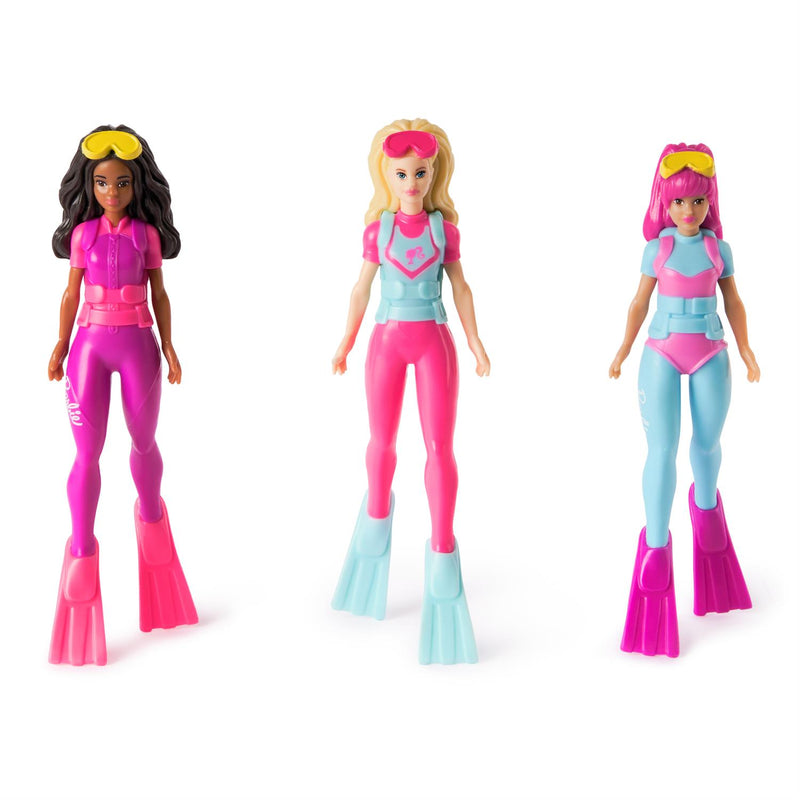 - BARBIE POOL DIVING TOYS: Soft and flexible diving toys with your favorite Barbie fashion dolls! Includes 3 pool-themed Barbie doll dive sticks!