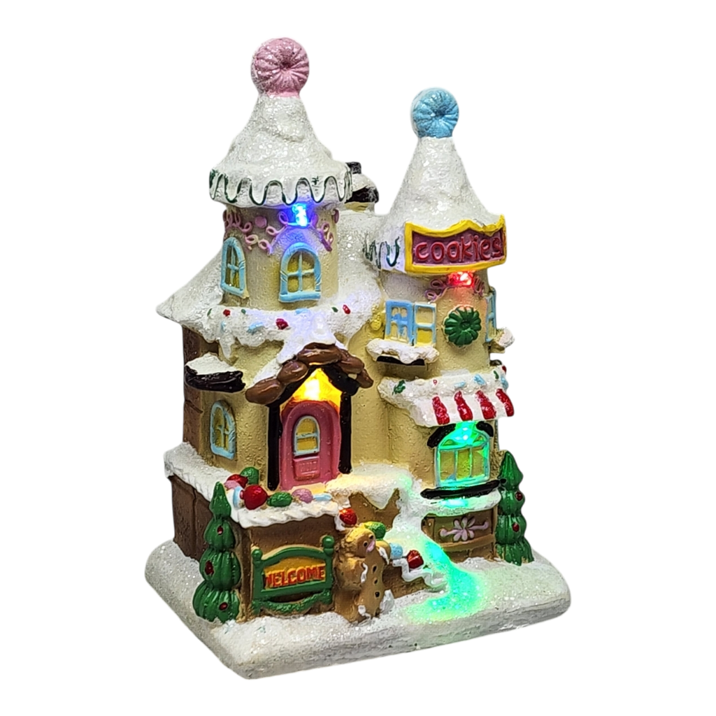 Bring the joy of the holiday season to life with this charming lighted ice cream shop a delightful centerpiece that captures the spirit of Christmas in a fun and whimsical way. Standing just over 6 inches tall this enchanting piece features colorful lights a welcoming door and playful details like a friendly gingerbread figure - perfect for sparking smiles and holiday cheer. The intricate design shows off a festive rooftop and candy cane accents making it a joyful addition to your holiday decorations.