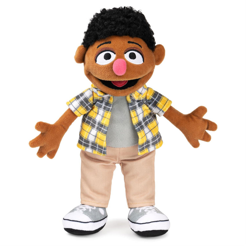 Meet Tamir, the newest resident of Sesame Street, and a charming addition to the Coming Together collection! This delightful plush doll stands just over 13 inches tall, showcasing Tamir's signature outfit that features khakis, a yellow-and-gray plaid shirt, and stylish gray sneakers. With his bright smile, soft plush hair, and embroidered facial details, Tamir is ready to bring joy and curiosity into playtime. As Gabrielle’s cousin, he embodies the spirit of friendship and inclusivity, teaching kids to celebrate their differences and learn from one another.