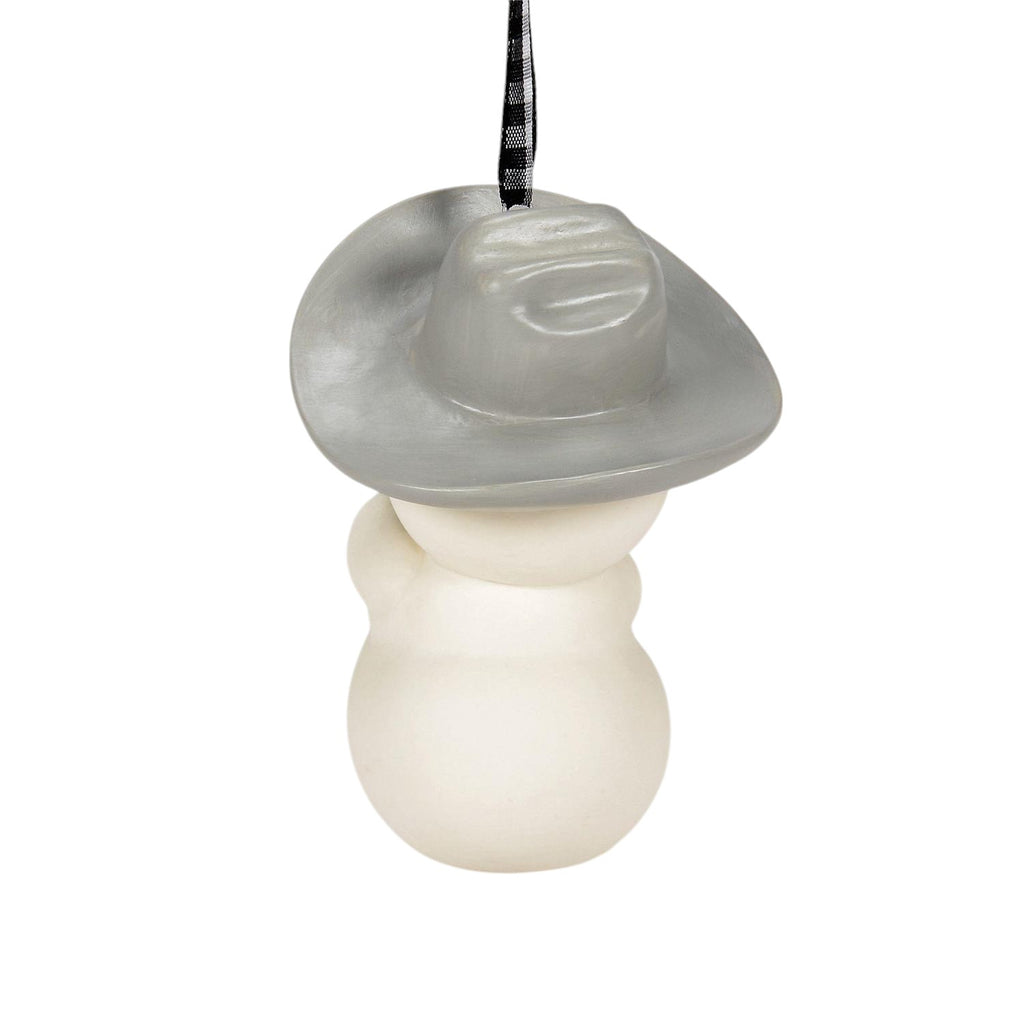 Celebrate the holiday spirit with a delightful twist featuring this charming Snowpinion ornament! Standing at just over 3.5 inches tall, this whimsical snowman is adorned with a playful cowboy hat and holds a tiny evergreen tree, embodying a fun and lighthearted vibe. With a cheeky grin, he proudly displays a tag that reads, "Merry Christmas, y'all!"—adding a warm Southern charm to your festive decor.