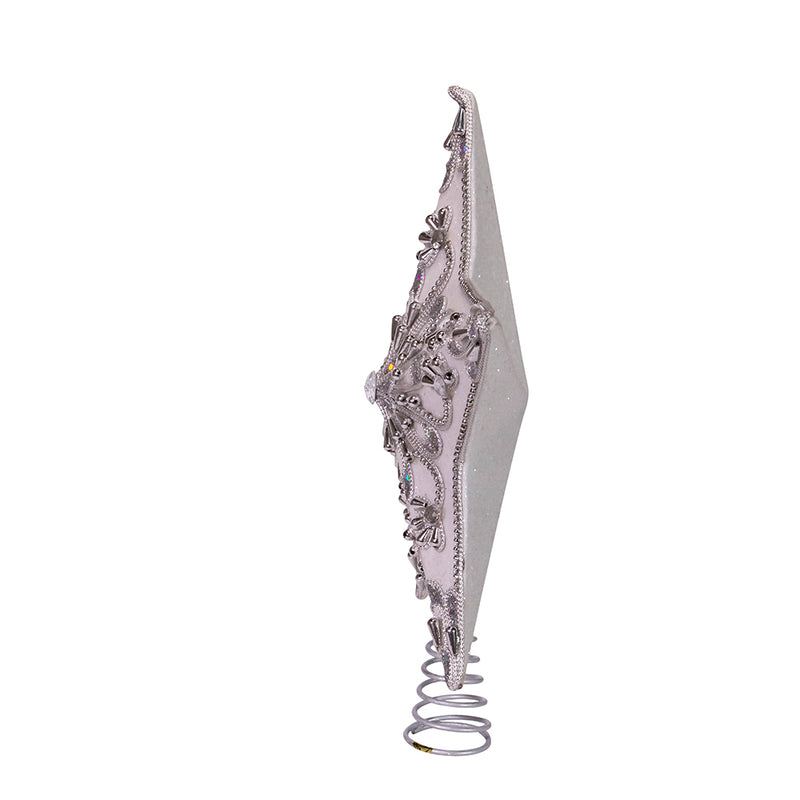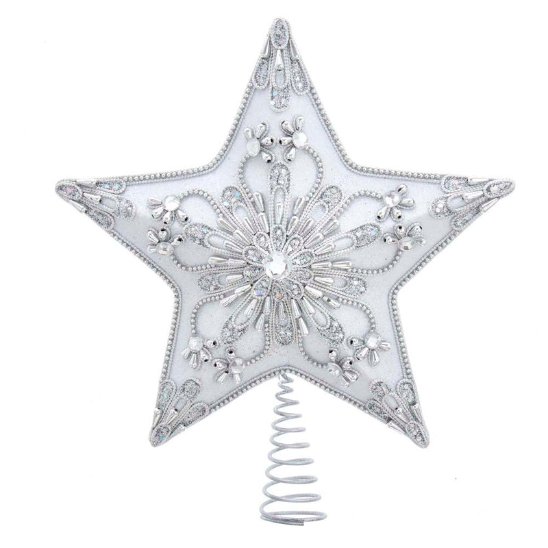 Add the finishing touch to your Christmas tree with this 13.5-inch white and silver star treetop from Kurt Adler. Its stunning 5-point star design is adorned with clear gems for an extra festive touch.