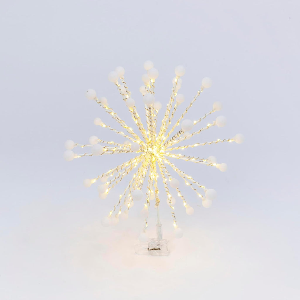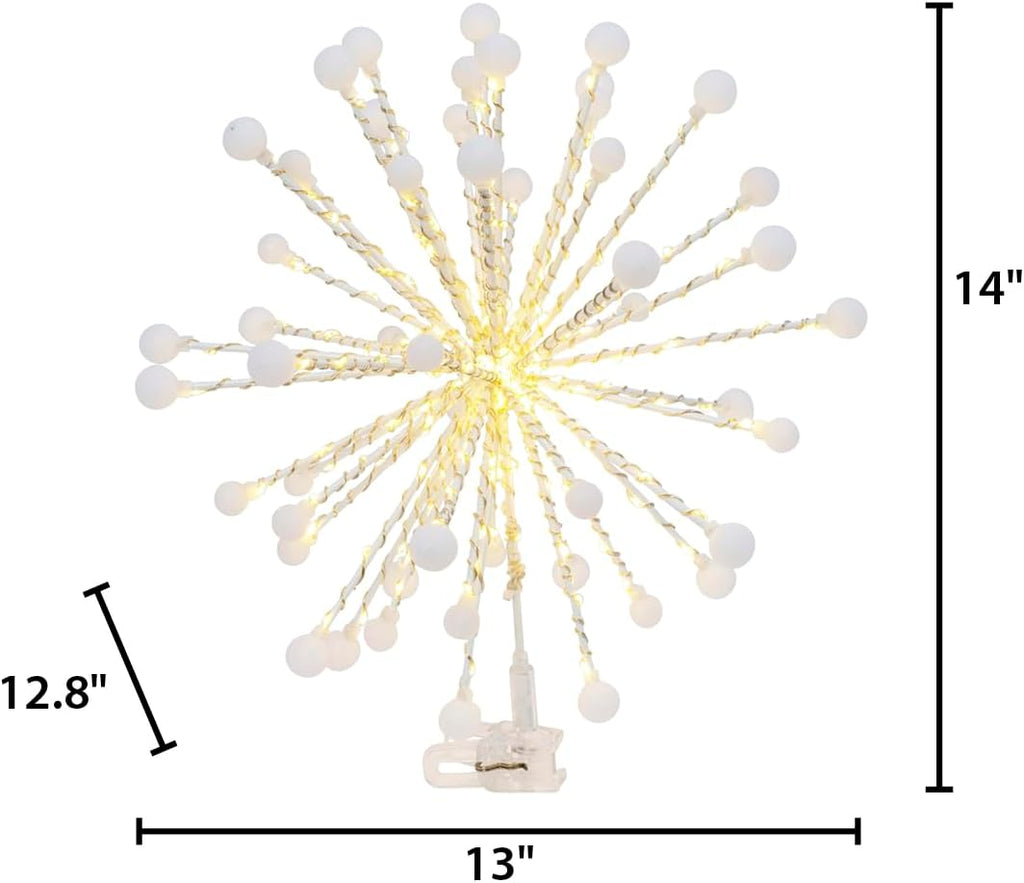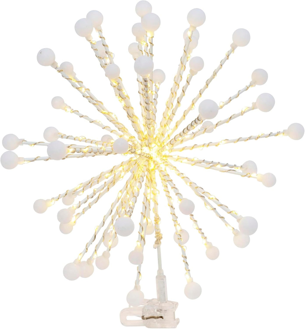Add a touch of twinkle to your home with this beautiful lighted 13.7-in high electric starburst tree topper! Bright cool-white incandescent LED lights burst from the top of your tree! This lighted starburst contains 200 cool white LED mini bulbs that will top your tree with amazing bright light to accent the top of your Christmas tree. Eye catching beautiful and bright!
