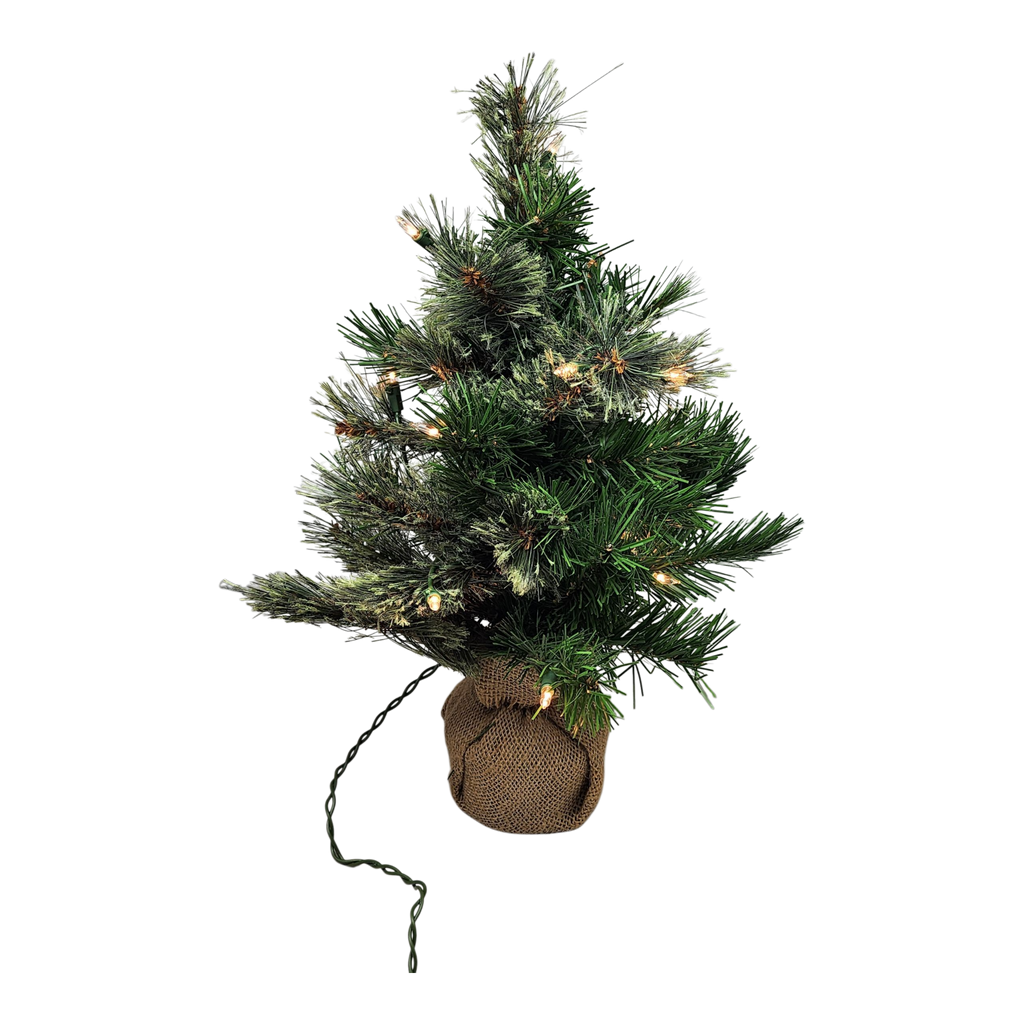Bring a touch of festive elegance to your holiday decor with our delightful Pre-lit Cashmere Pine Tree! Standing at an inviting 18 inches tall, this mini tree is perfect for adding a cozy vibe to any space, whether it's on your dining table, office desk, or as a charming centerpiece for your holiday gatherings. Its beautifully crafted branches adorned with 51 tips provide a lush, full appearance that mimics the beauty of nature, while the burlap wrapped base adds an rustic touch that complements any decor.