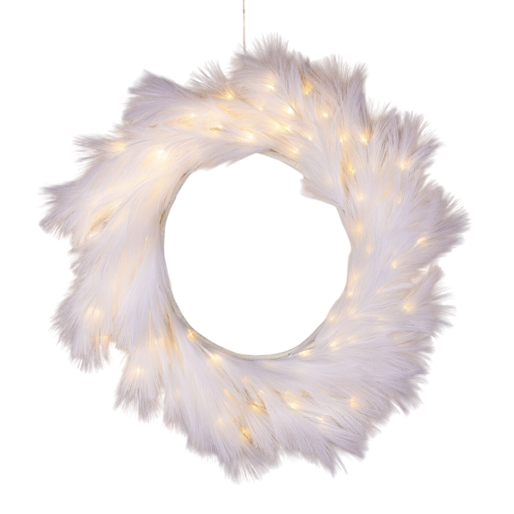 Lighted Artificial Pampas Grass Wreath