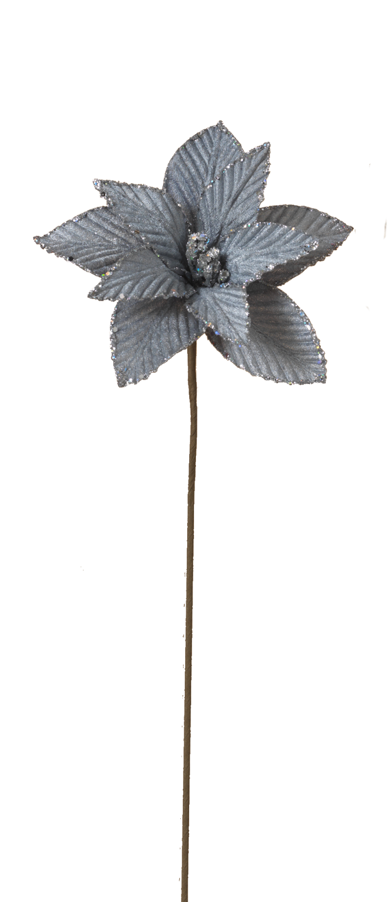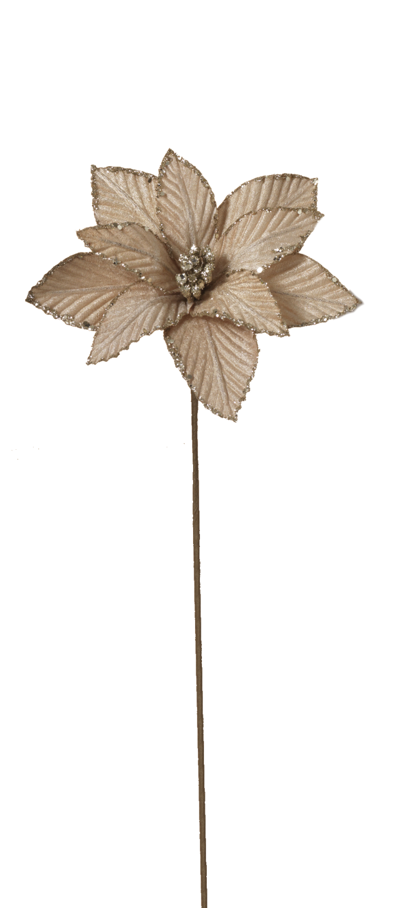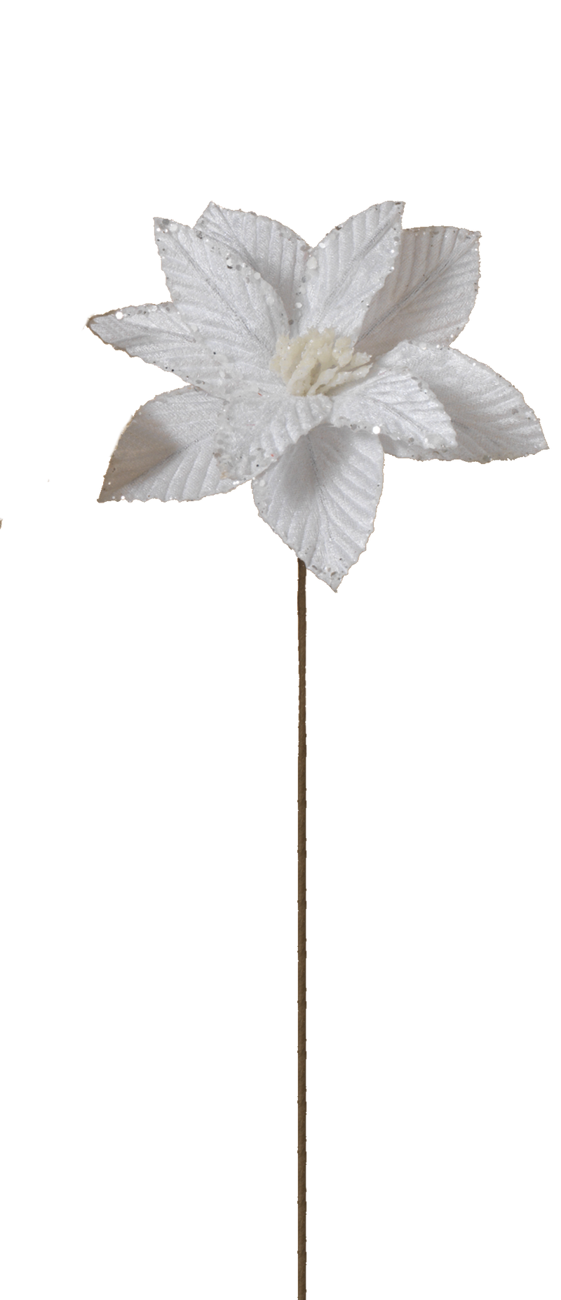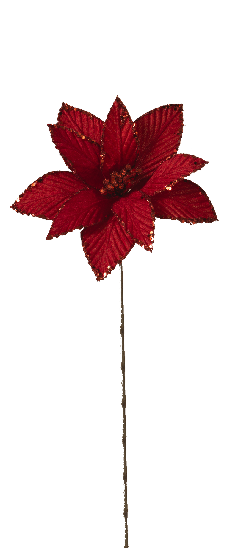 12-Inch Tall Holiday Poinsettia Pick with Glitter Accent.
