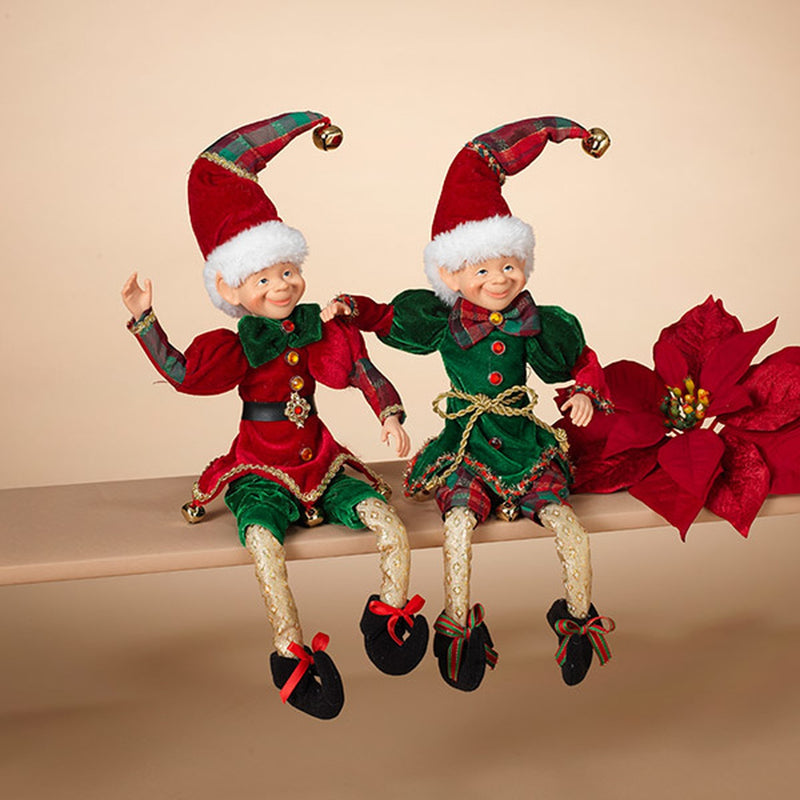 16 inch tall Elf wearing an amazing fabric outfit with lots of handmade accents.