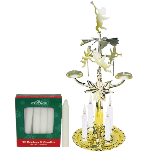 Bundled with a box of 12 Extra White Candles to keep your Chime spinning!