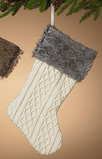 The standout feature is the luxurious grey faux fur cuff, providing a beautiful contrast to the cream knit and adding a soft, inviting texture. Generously sized, this stocking is perfect for filling with an abundance of treats, gifts, and surprises for your loved ones. Hang it on your mantel, stairs, or by the fireplace to create a warm and welcoming holiday atmosphere.