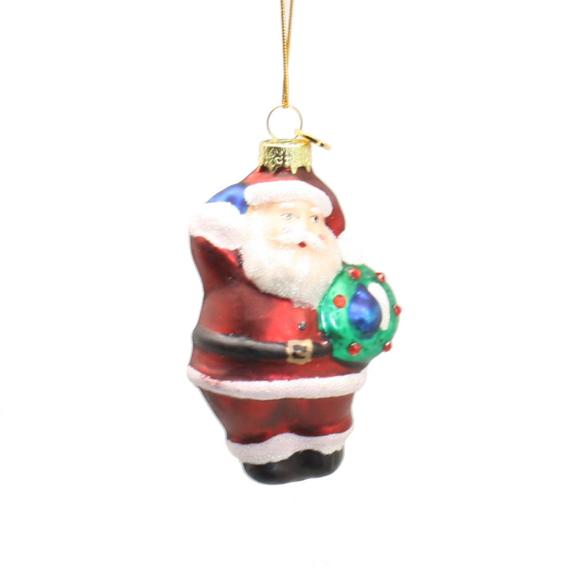 3 Inch Boxed Glass Ornament - Santa with Wreath