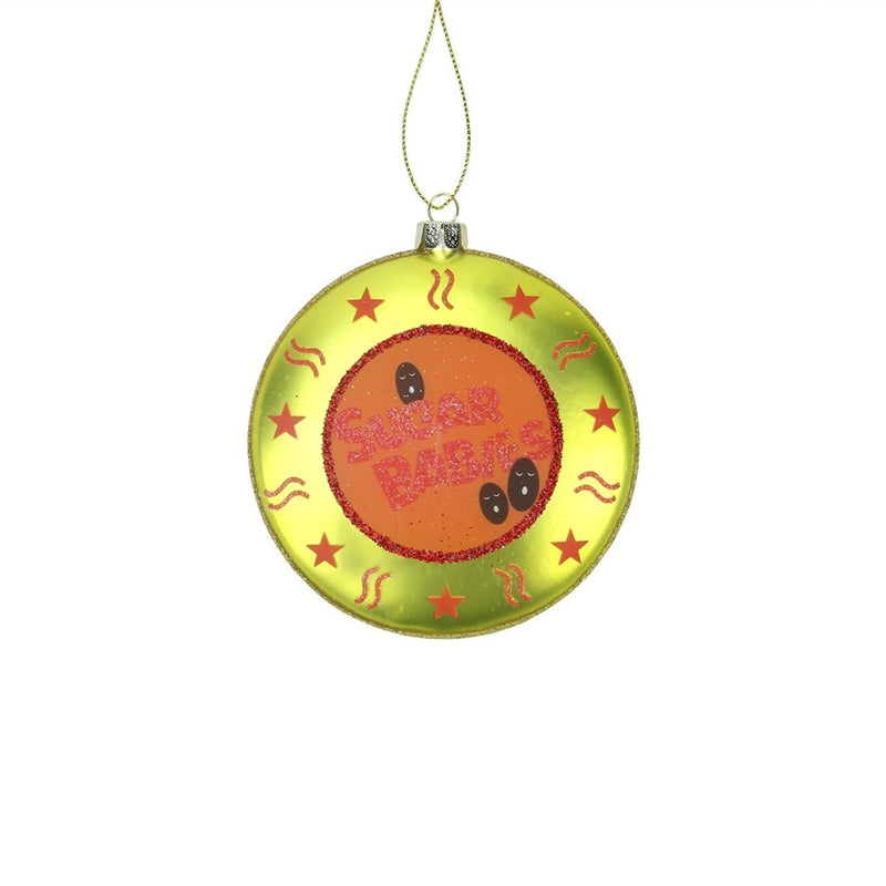 Celebrate the sweet joy of the holiday season with the whimsical Candy Lane Tootsie Roll Gold Sugar Babies Ornament! Measuring 4 inches in diameter, this delightful glass ornament features a vibrant gold background adorned with playful red stars and the iconic Sugar Babies logo, making it a fun addition to your holiday decor. The double-sided design allows you to enjoy its charm from any angle, ensuring it stands out beautifully on your tree or holiday display.