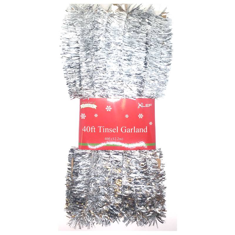Add a touch of elegance to your festive décor with our Shimmering Silver Tinsel Garland! This spectacular garland stretches an impressive 40 feet, allowing you to create stunning displays at every holiday gathering. Made from shimmering foil, this garland reflects light beautifully, bringing a sparkling atmosphere to any setting. Silver is often associated with sophistication and charm, making it a timeless choice for decorating during the holidays and throughout the winter season.