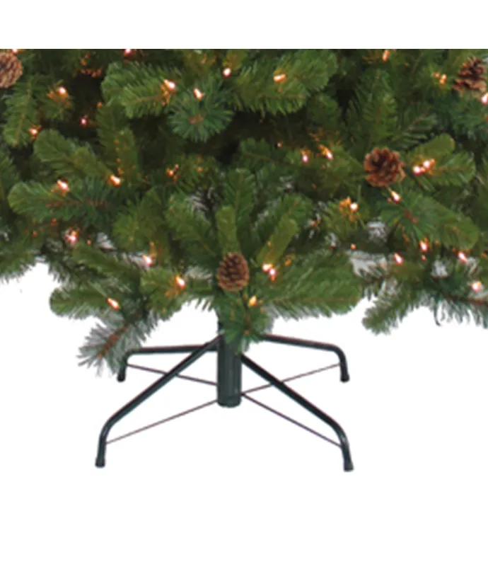 This Kurt Adler 7.5-foot pre-lit Burlington Spruce Christmas tree is a beautiful addition to any holiday décor. This tree is pre-lit with clear incandescent lights and has both pointed and round tips. With its standard design this tree simply needs your favorite ornaments and treetop to complete this unique look.