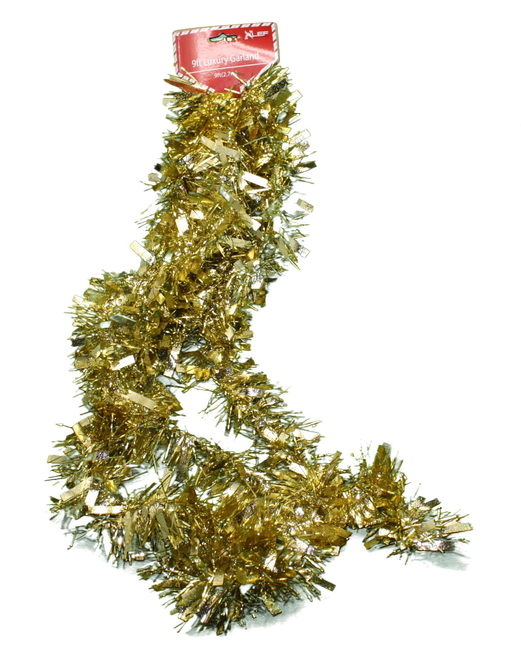 Add a touch of glamour and sparkle to your holiday decor with our stunning Gold Foil Garland! Measuring 9 feet long and approximately 3 inches wide, this lush garland features a vibrant, reflective foil that creates a dazzling shimmer, perfect for catching the light and drawing attention. With a standard strip cut on every strand, it offers a rich and textured appearance that enhances any festive setting.