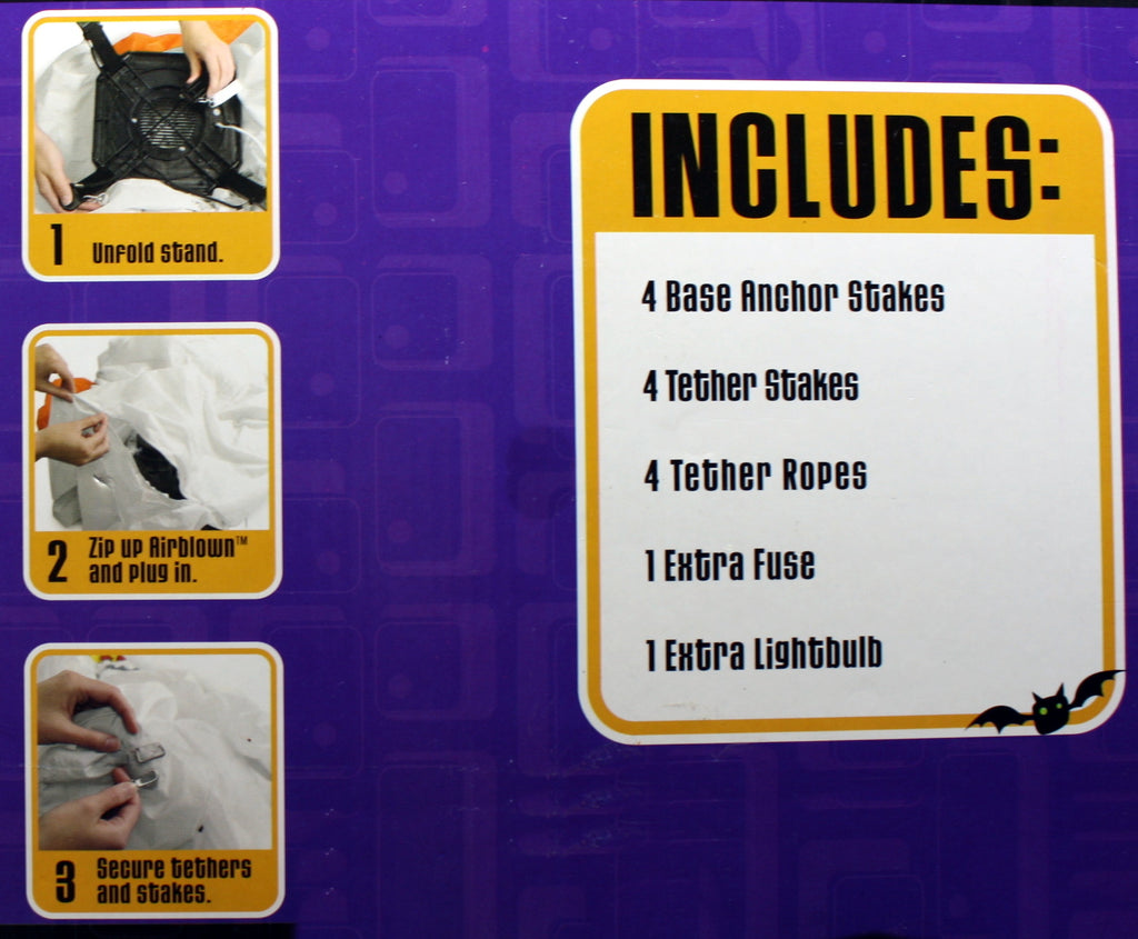 Transform your home into a spook-tacular sight with this 8-foot tall Airblown Inflatable Halloween Decoration. Featuring a playful ghost perched atop a gravestone marked "RIP" with a startled jack-o'-lantern at its base, this towering display captures the fun and fright of Halloween. Its bright colors and whimsical design are sure to delight trick-or-treaters and neighbors alike, creating a festive atmosphere that's perfect for the season.