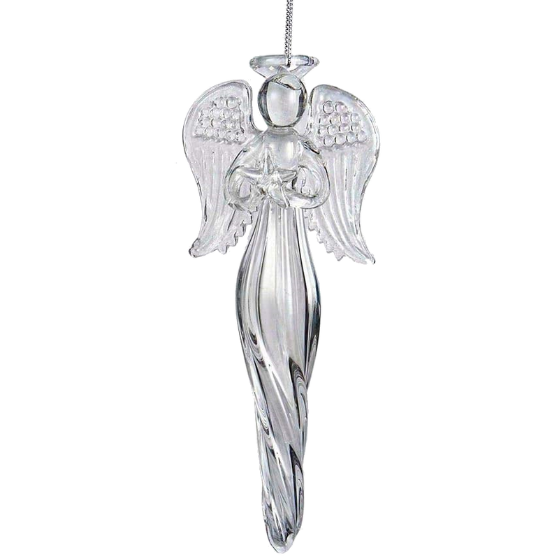 Add a celestial spirit to your holiday decor with the breathtaking Angel Finial Glass Ornament, featuring an angel holding a sparkling star. Measuring approximately six inches long, this stunning ornament is crafted from clear glass, showcasing both simple and intricate details that reflect elegance and grace. The angel's secure grasp on the star symbolizes hope, guidance, and the light of the holiday season, making this piece a perfect addition to your festive celebrations.