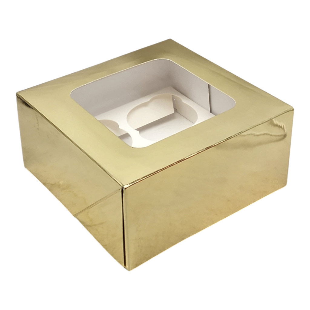 The clear window on top allows recipients to peek at the delectable delights inside, tantalizing their taste buds even before they open the box. The sturdy construction ensures that your treats remain fresh and intact while in transit. Interestingly, gold packaging has long been associated with high value and celebration, making it perfect for festive occasions, weddings, and special milestones. Elevate your presentation and delight your recipients with this chic silver cupcake box, making every sweet moment memorable.
