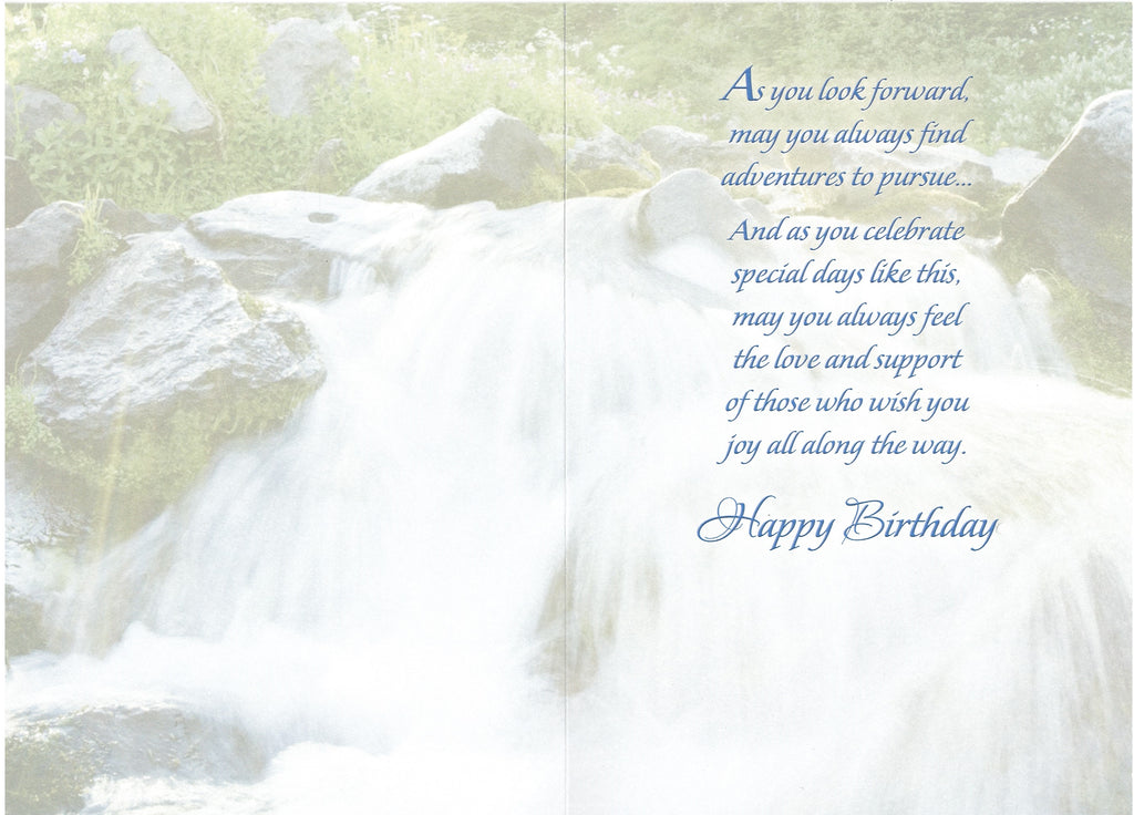 Inside: As you look forward, may you alway find adventures to pursue... And as you celebrate special days like this may you always feel the love and support of those who with you joy all along the way. Happy Birthday