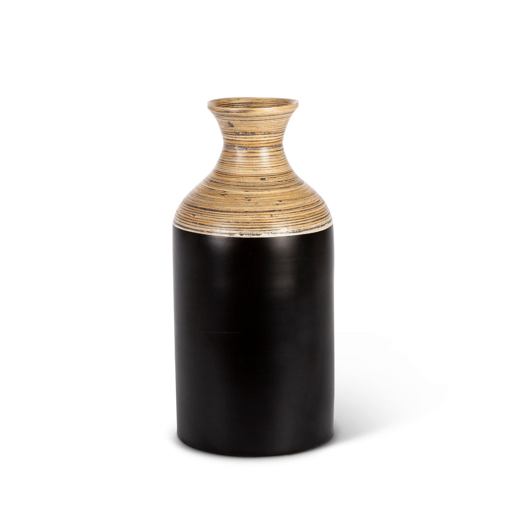 Elevate your home decor with the stunning Black Spun Bamboo Tall Vase! This elegant vase combines modern aesthetics with natural materials, featuring a striking two-tone design that showcases both sleek black bamboo and beautifully textured light bamboo. Standing at 17 inches tall with a width and length of 8 inches, this vase provides an impressive focal point for any room.