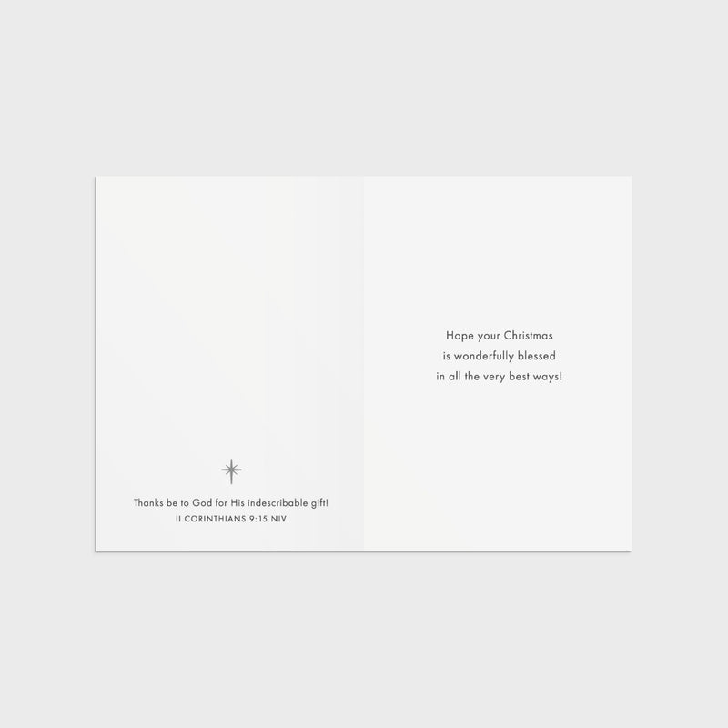 Wish friends and loved ones a very merry and blessed Christmas with these inspirational cards that celebrate the best gift ever, Jesus! This premium assortment of inspirational Christmas greeting cards includes twelve cards each of two designs.