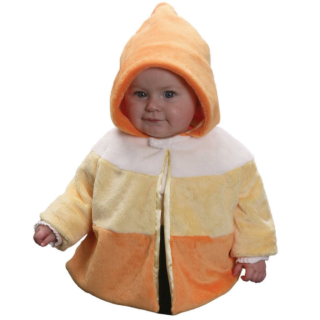 This Candy Corn infant coat from GUND allows you to dress baby like a giant piece of candy corn. The soft coat includes a hood… for extra warmth, and is 20" long from the top of the hood to the bottom of the coat.