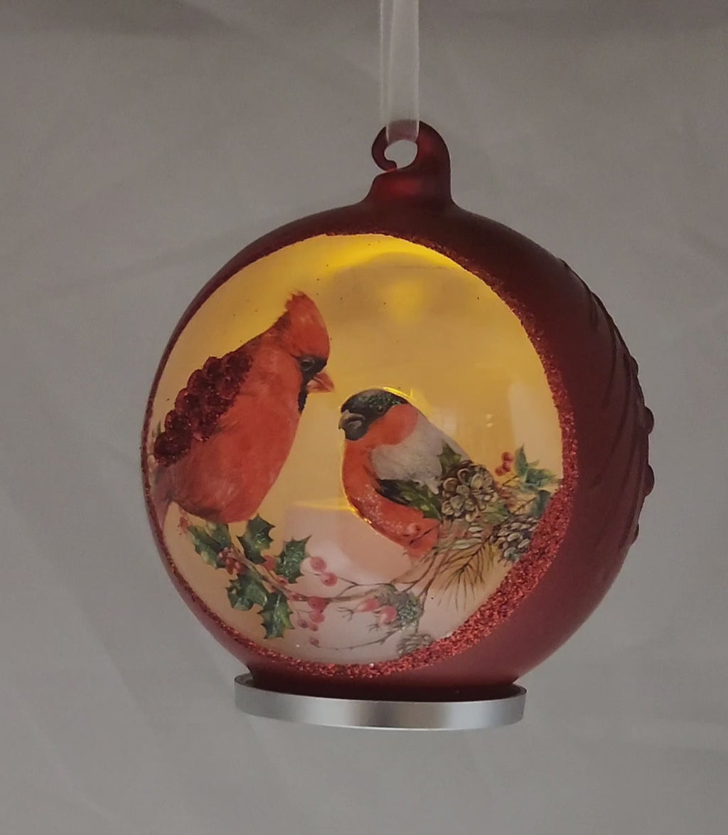Cardinal LED Lighted Glass Ornament - 2 Birds