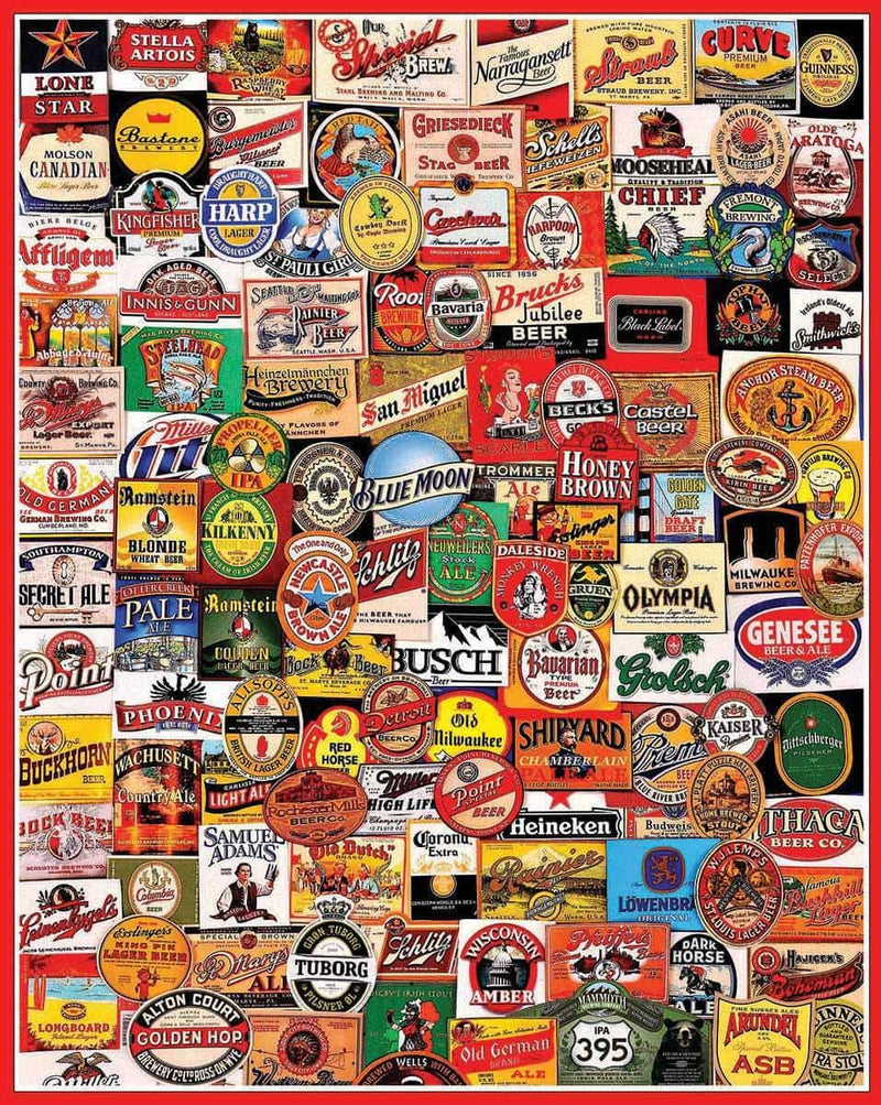Beer lovers are sure to find their favorite on this beer jigsaw puzzle - Cheers! by Artist Charlie Girard. This beer-themed jigsaw collage would make a great piece of framed wall art for the rec room, bar or man cave. 1000 piece jigsaw puzzle: Finished size 24" x 30".