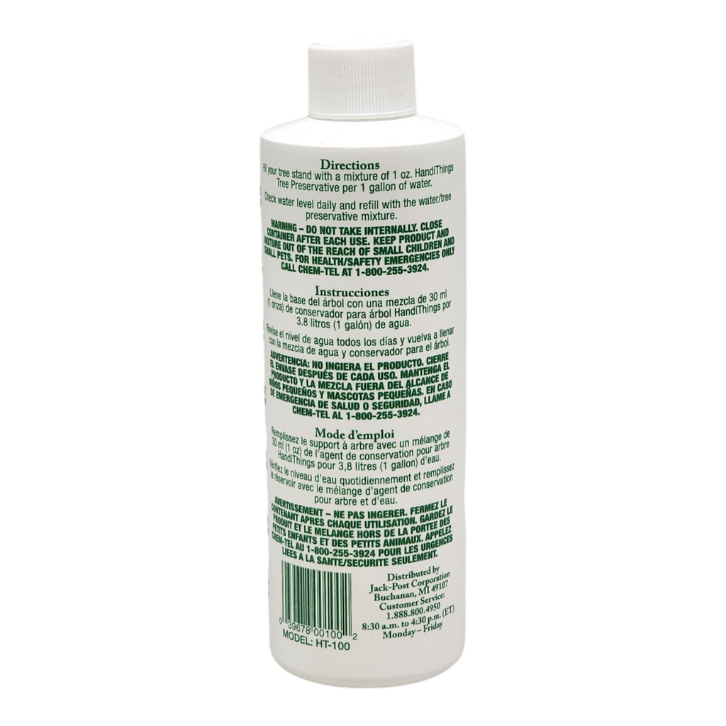 The formula is simple to use: mix 1 ounce of HandiThings Tree Preservative with 1 gallon of water and use this mixture to keep your tree stand filled daily. This bottle can make up to 8 gallons of preservative solution, providing lasting care for your tree.