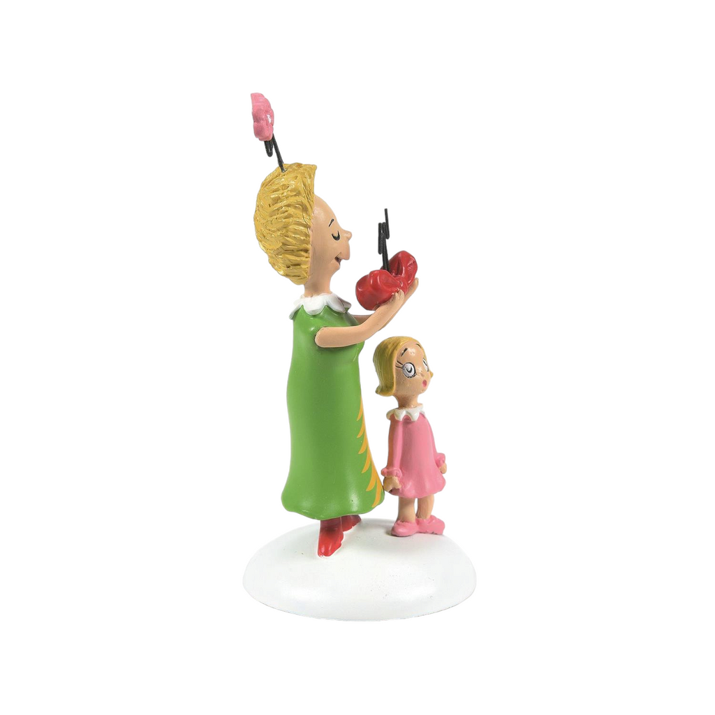 A new bow, just for ME? exclaims Cindy Lou as her mother gives her an early Christmas present.