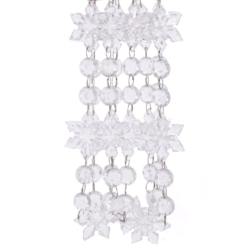 This clear acrylic snowflake beaded garland from Kurt Adler is a wonderful addition to your home or holiday décor. It features acrylic snowflakes, beads and metal rings in an alternating pattern.