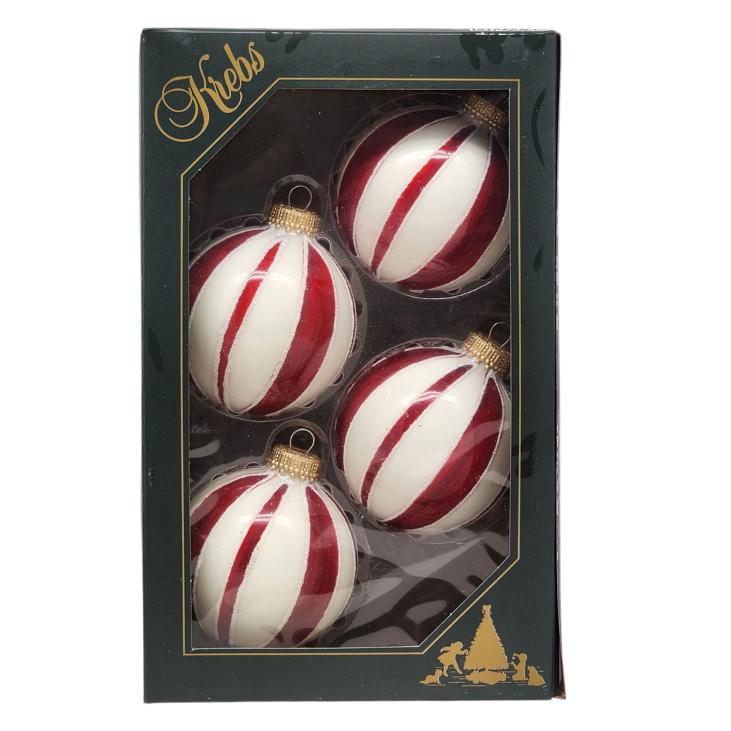 Krebs Glass Ball 4 Pack - Peppermint Stripe