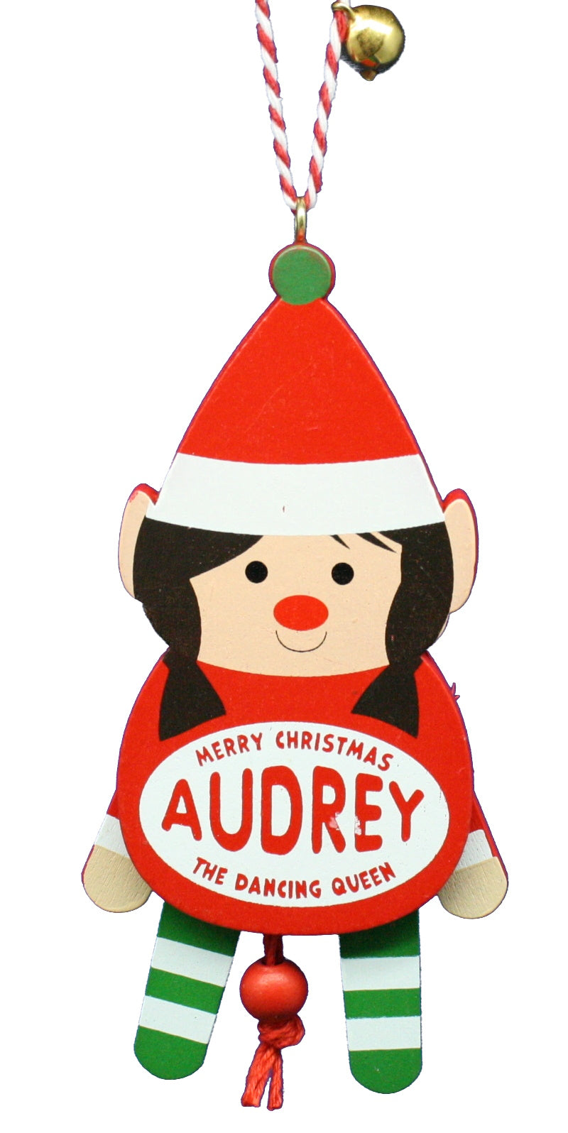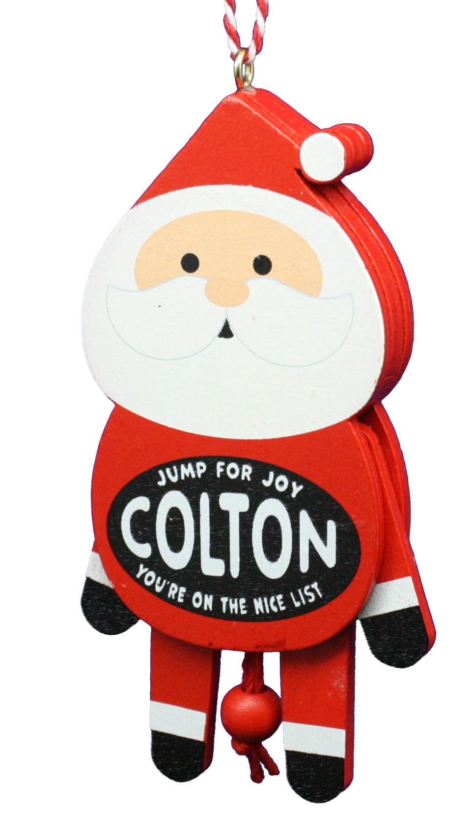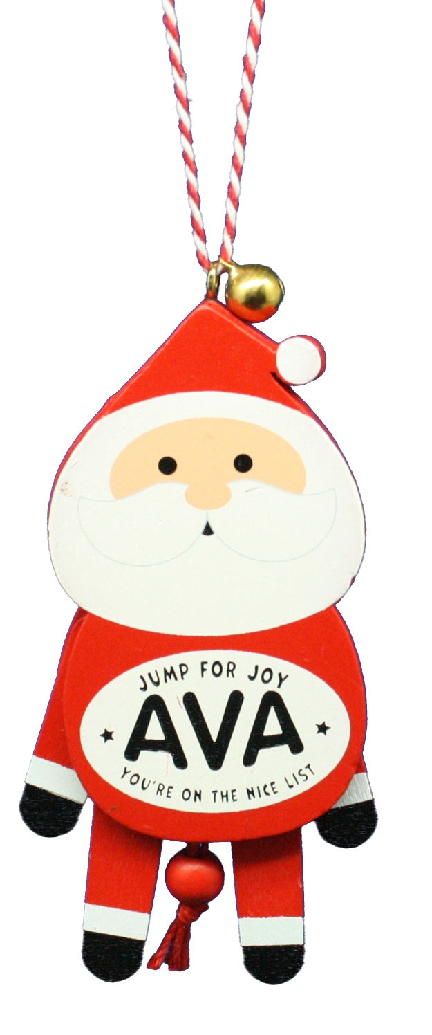Add a touch of tradition and color to your holiday decor with a wooden Tree Hanging Decoration suitable for the entire family. Each Christmas Dancing Decoration features one Christmas character accompanied by delightful taglines like “Merry Christmas Anthony to The Greatest Snowman” and "Jump for Joy AVA You're on The Nice List". Plus, give the string a tug and watch your Christmas Dancing Decoration spring to life with joyful jumps and dances.