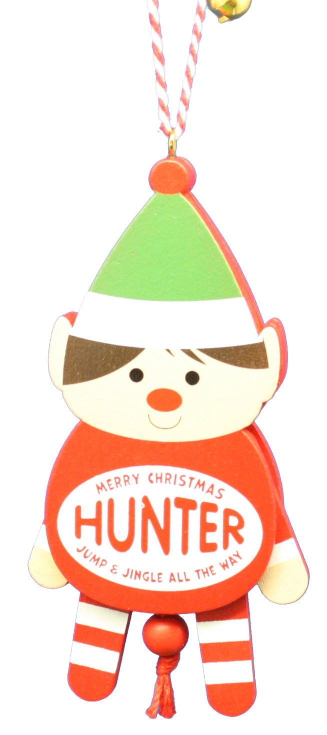 Add a touch of tradition and color to your holiday decor with a wooden Tree Hanging Decoration suitable for the entire family. Each Christmas Dancing Decoration features one Christmas character accompanied by delightful taglines like “Merry Christmas Anthony to The Greatest Snowman” and "Jump for Joy AVA You're on The Nice List". Plus, give the string a tug and watch your Christmas Dancing Decoration spring to life with joyful jumps and dances.