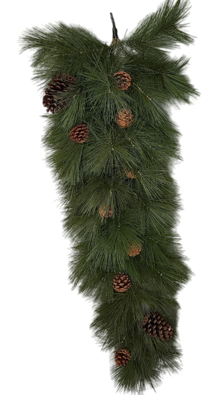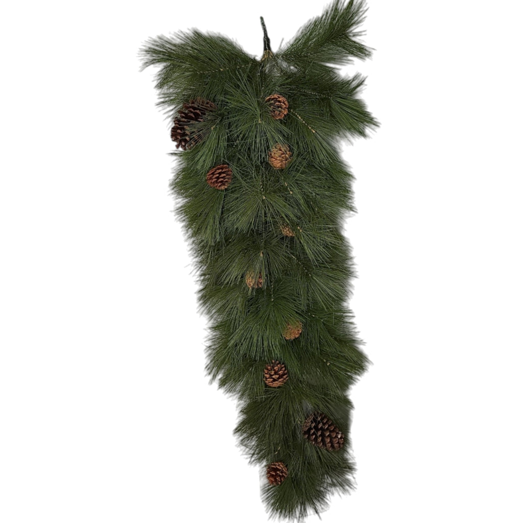 Bring the beauty of nature indoors this holiday season with our stunning Edburg Pine Teardrop! Measuring an impressive 42 inches long and 13 inches wide, this gorgeous teardrop garland is designed to create a warm and inviting atmosphere in your home. Made with 79 lush tips, it replicates the look of fresh pine while adding a festive touch with its intricate greenery.