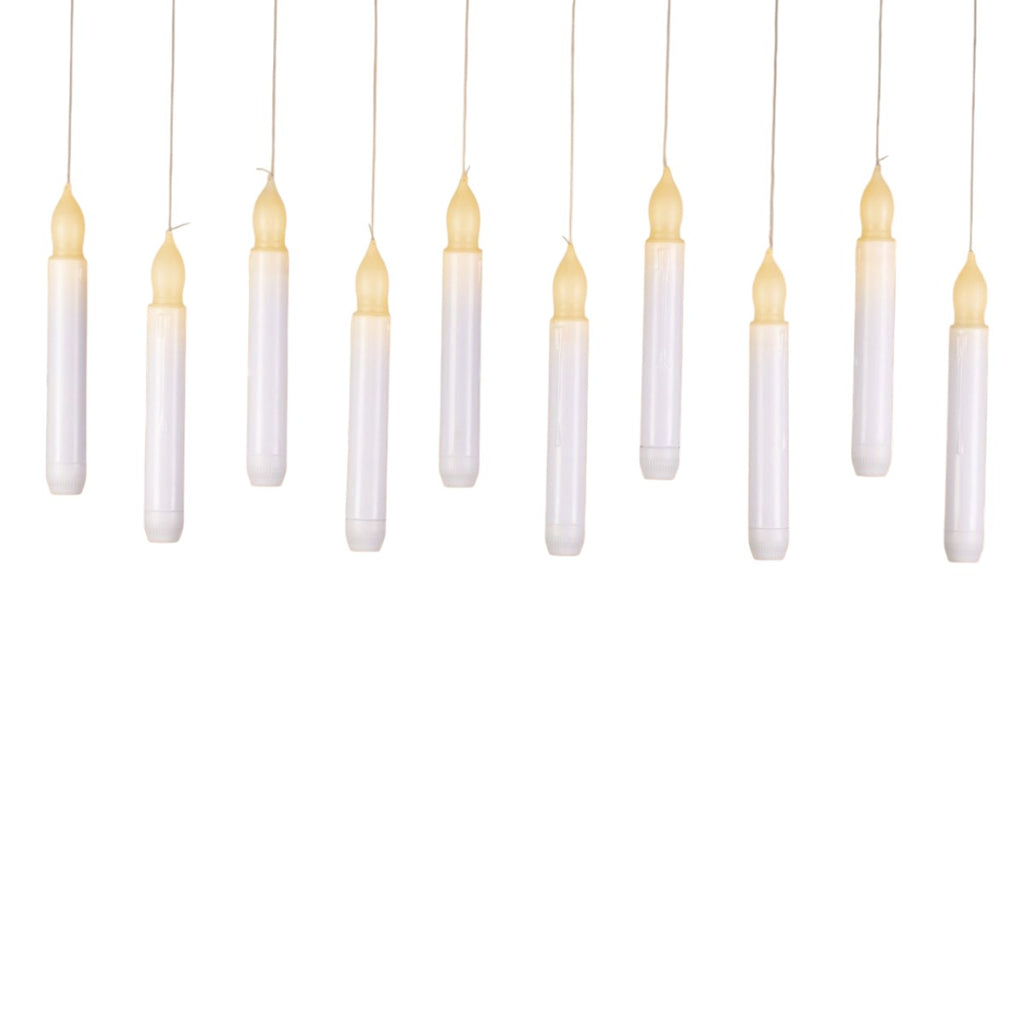 Transform your space into a magical gathering spot with our Enchanting Floating Candles Set! This captivating collection includes ten elegant taper candles that create a whimsical and cozy atmosphere, whether for a Halloween soirée or a festive holiday celebration. Each candle measures 6.5 inches in height and features a flickering LED flame that mimics the glow of traditional candles without the worry of wax drips or open flames. Designed for both indoor and outdoor use, these floating candles can be effortlessly arranged in various displays, adding an enchanting touch wherever you desire.