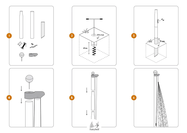 Don’t have a flagpole? No problem. The Fairybell® Sectional Flagpole is designed to create the perfect setup for your Fairybell® 600 CM (19.68 Feet, Christmas tree—or to fly a standard flag with pride. This modular pole assembles easily and includes everything you need to hoist your tree or banner skyward.