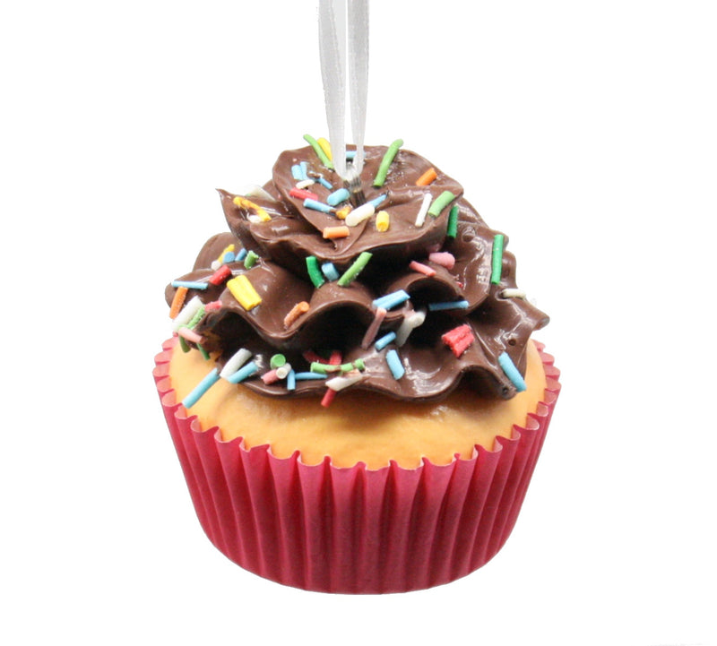 Add a sweet touch to your holiday decorations with these realistic-looking cupcake ornaments! Made of polyurethane and hanging from sheer white ribbon these foam cupcakes in pink cupcake papers are the perfect worry-free decoration for any party or event.