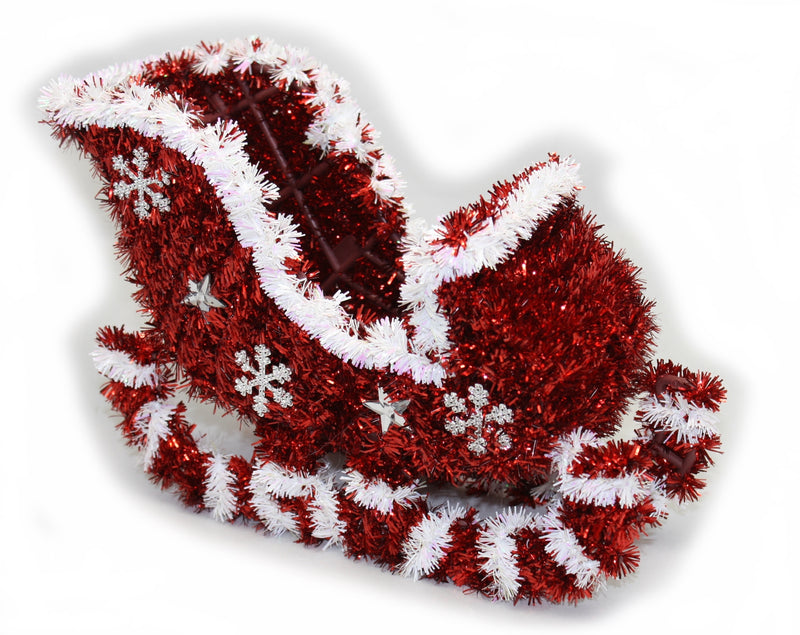 Garland Tinsel Sleigh to decorate for a fun festive Christmas season! Ideal for gift giving, fill with cookies, wine, a plant....
