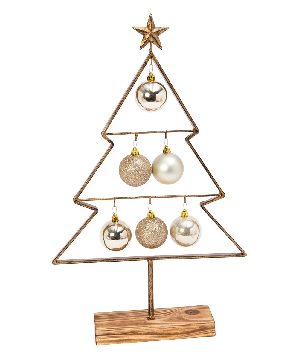 Deck the halls with this miniature tree that features dangling ornament accents. It's perched on a fir wood base for stability and rustic charm.