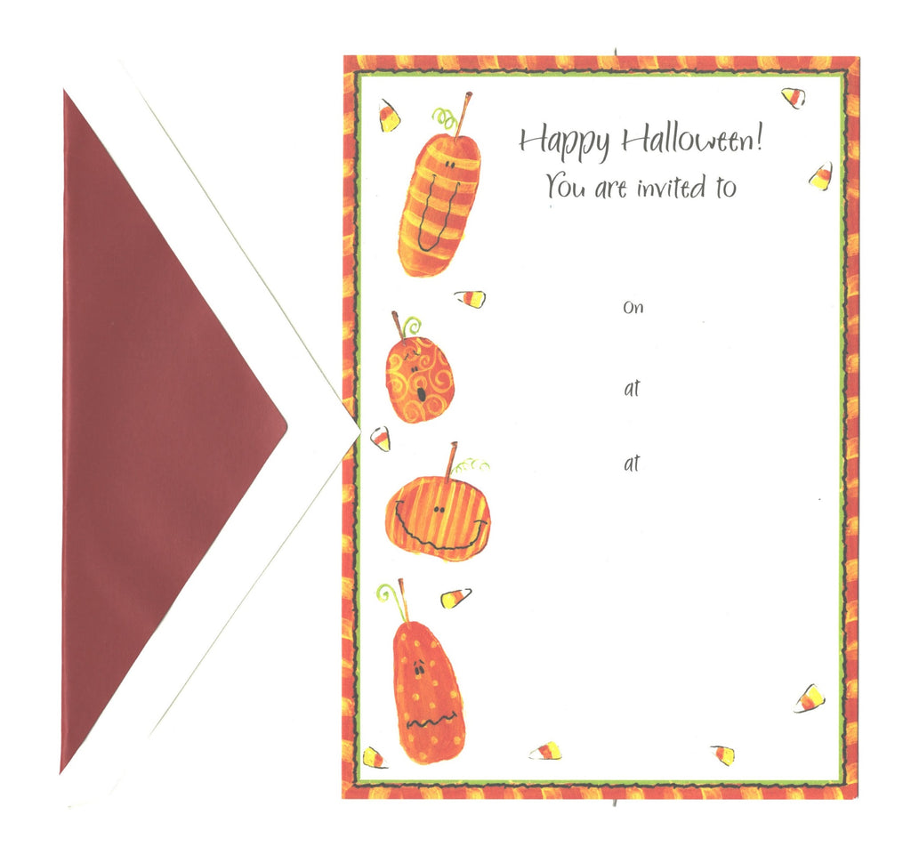 It's time to get ready for Halloween! These candy corn and pumpkin themed invitations are the perfect way to invite your friends and family to your spooky celebration. With 10 - 5" x 7" cards and matching envelopes, you can make sure everyone knows about the fun!