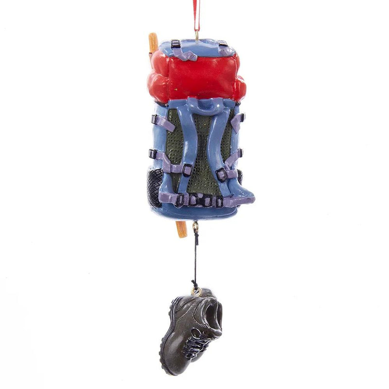 This 5-Inch Hiking Backpack with Shoe Dangle Ornament from Kurt Adler is a delightful addition to any holiday or theme party décor!