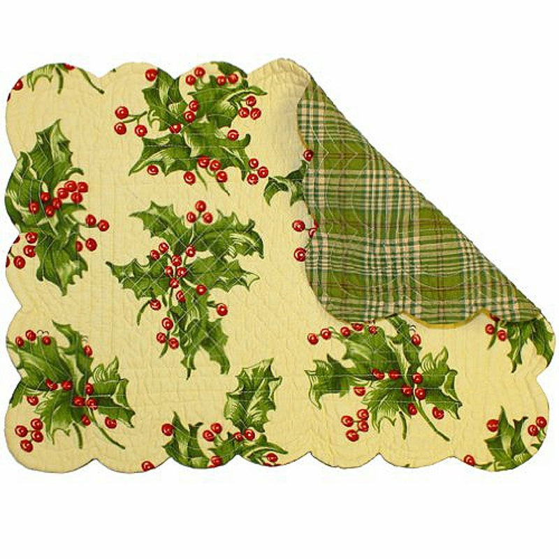 Friends and family will know they've been treated to the best when you enhance your holly-day setting with this elegant placemat. A scalloped edge adds intrigue to this rectangle cream holly placemat making it ideal for centerpieces as well as place settings. This decorative keepsake is sure to have a special place in the home of your host or hostess for years to come! 13" wide x 19" long Machine Washable