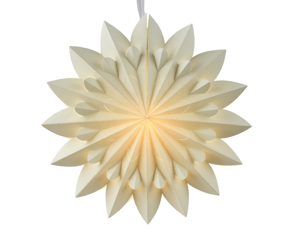 Brighten your holiday decor with the stunning Lumineo Paper Star! This beautifully crafted star, measuring about 16 inches in diameter and 4 inches deep, features an intricate design that radiates elegance and charm. Made from FSC-certified paper, it casts a warm, inviting glow, making it a perfect focal point for any festive setting.