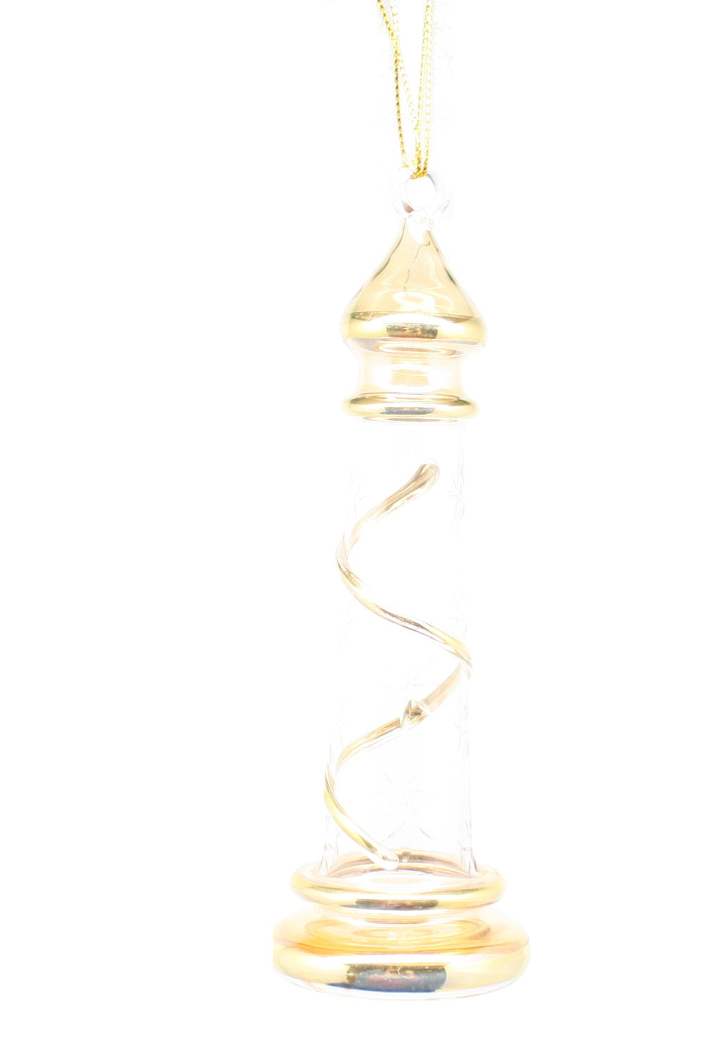 Add a touch of opulence to your holiday decor with the breathtaking Elegant Gold Lighthouse Ornament. Standing just over 6 inches tall and about 2 inches wide, this stunning piece is expertly crafted from mouth-blown glass in Egypt. The exquisite spiral design, highlighted with radiant 24K gold accents, ensures that it shines beautifully when catching the light, making it a truly eye-catching ornament for your festive celebrations.
