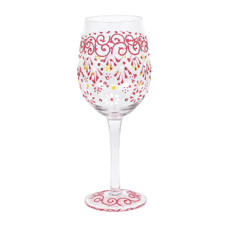 Melon Henna Stem Wine Glass. Each glass is unique as it is painted by hand, perfect for casual entertaining, and durable enough for everyday use.