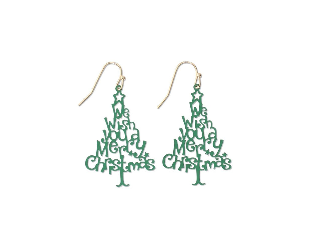 Celebrate the spirit of the season with these whimsical "We Wish You a Merry Christmas" Tree Earrings! Crafted in a playful green design, these earrings feature a delightful Christmas tree shape adorned with festive text that spreads holiday cheer. They’re perfect for showcasing your holiday spirit at parties and gatherings.